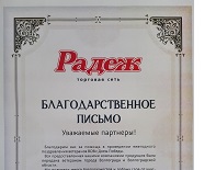 Торговая сеть Радеж благодарит АТГ за предоставленную продукцию для поздравления ветеранов с Днем Победы.